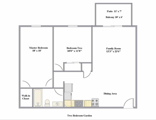 2 Bedroom -1 Bath Deluxe w/ Patio-Lower Level